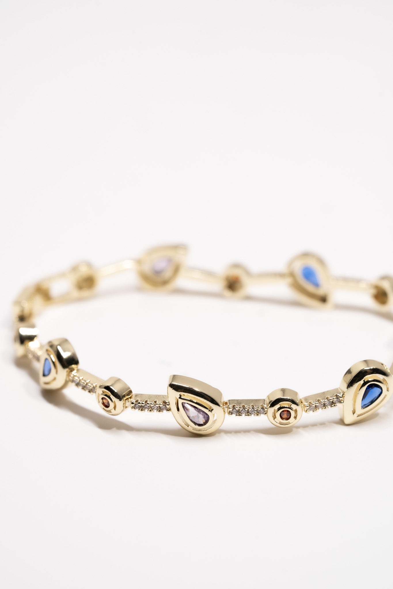 - Taşlar: Renkli damla kesim taşlar ve küçük zirkon detayları