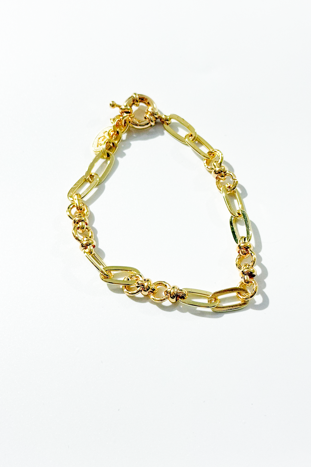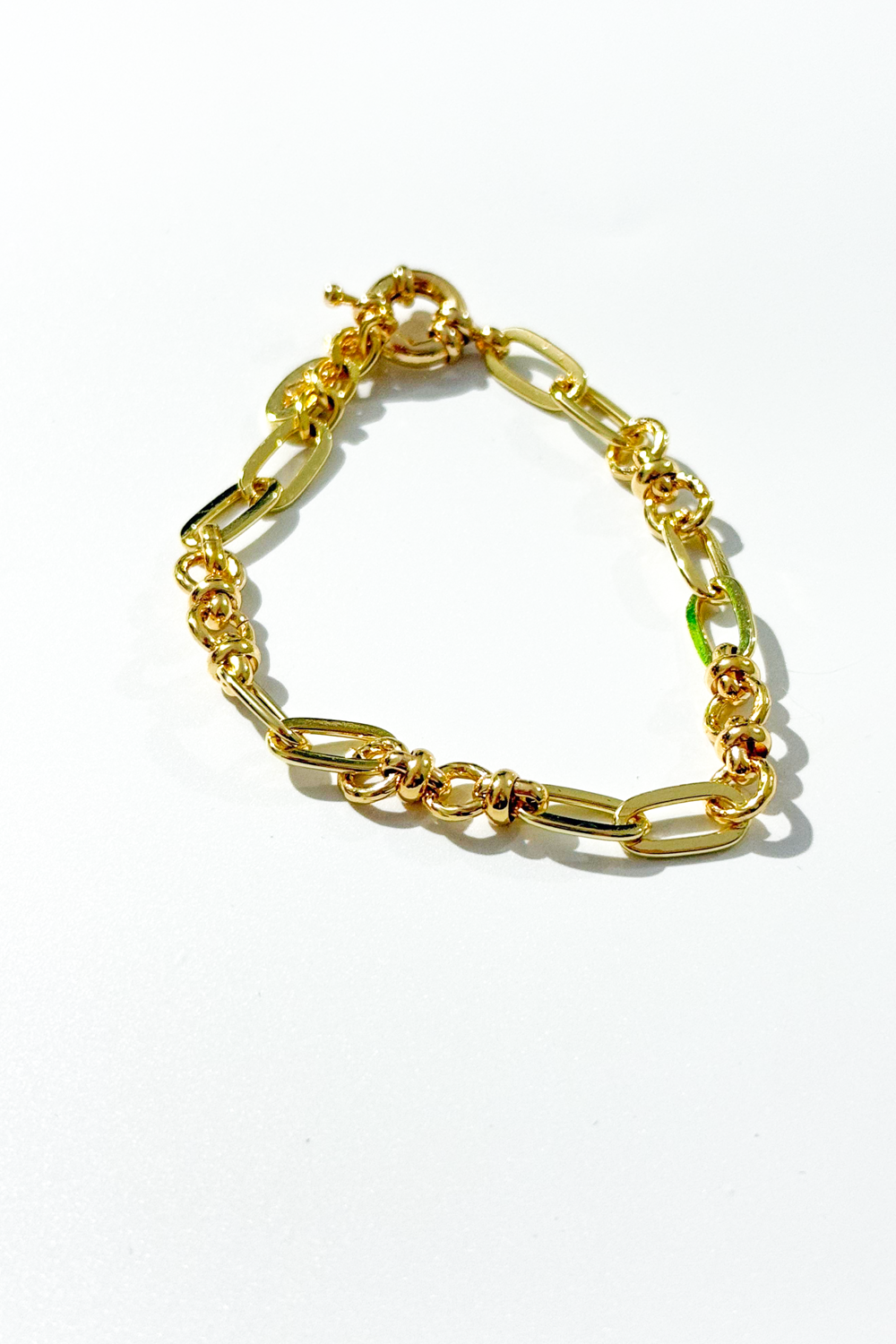 Samanta Bileklik, farklı boyutlardaki küre detayları ve modern zincir halkalarıyla hareketli ama dengeli bir tasarım sunar. Altın tonlu parlak yüzeyi sayesinde bilekte zarif bir ışıltı yaratırken, güçlü formu ile günlük stilinize karakter katar. Minimal detaylarla zenginleştirilmiş bu bileklik, sade şıklığı sevenler için ideal bir tamamlayıcıdır.