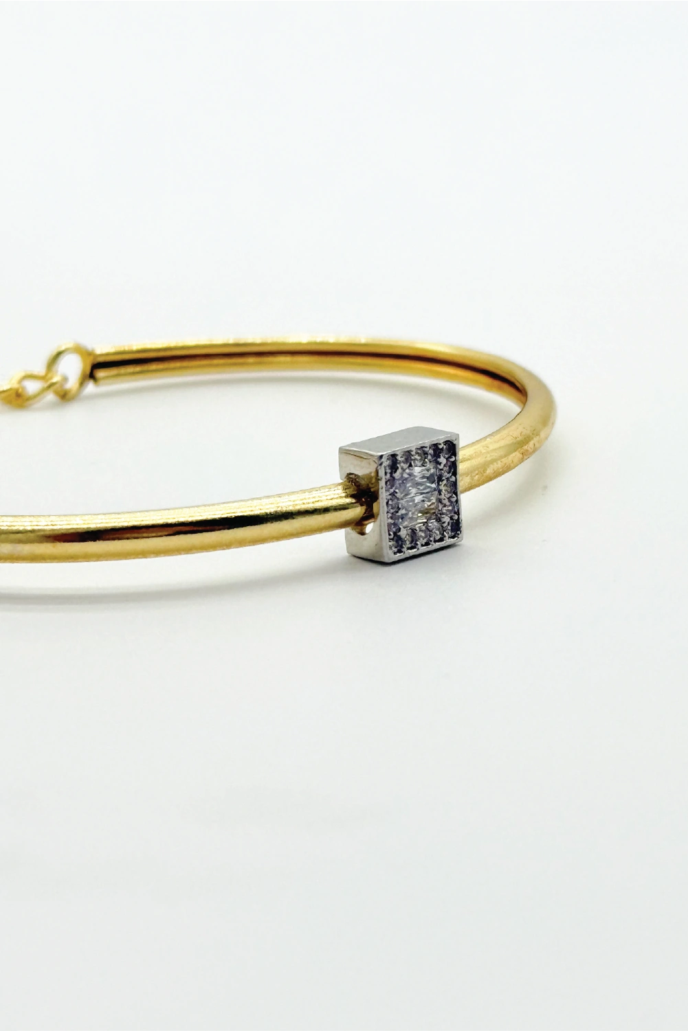 Ra Satürn Kelepçe, modern ve minimal tasarımıyla güçlü bir stil vurgusu sunan özel bir bilekliktir. Altın tonlu sade kelepçe formu, merkezde yer alan taş detaylı geometrik parça ile sofistike bir ışıltı kazanır. İki renkli tasarım anlayışı sayesinde hem klasik hem de çağdaş kombinlerle kolayca uyum sağlar. Zarif ama iddialı duruşu ile tek başına kullanıldığında güçlü bir etki yaratır, diğer bilekliklerle kombinlendiğinde ise stilinizi tamamlayan şık bir tamamlayıcı olur.