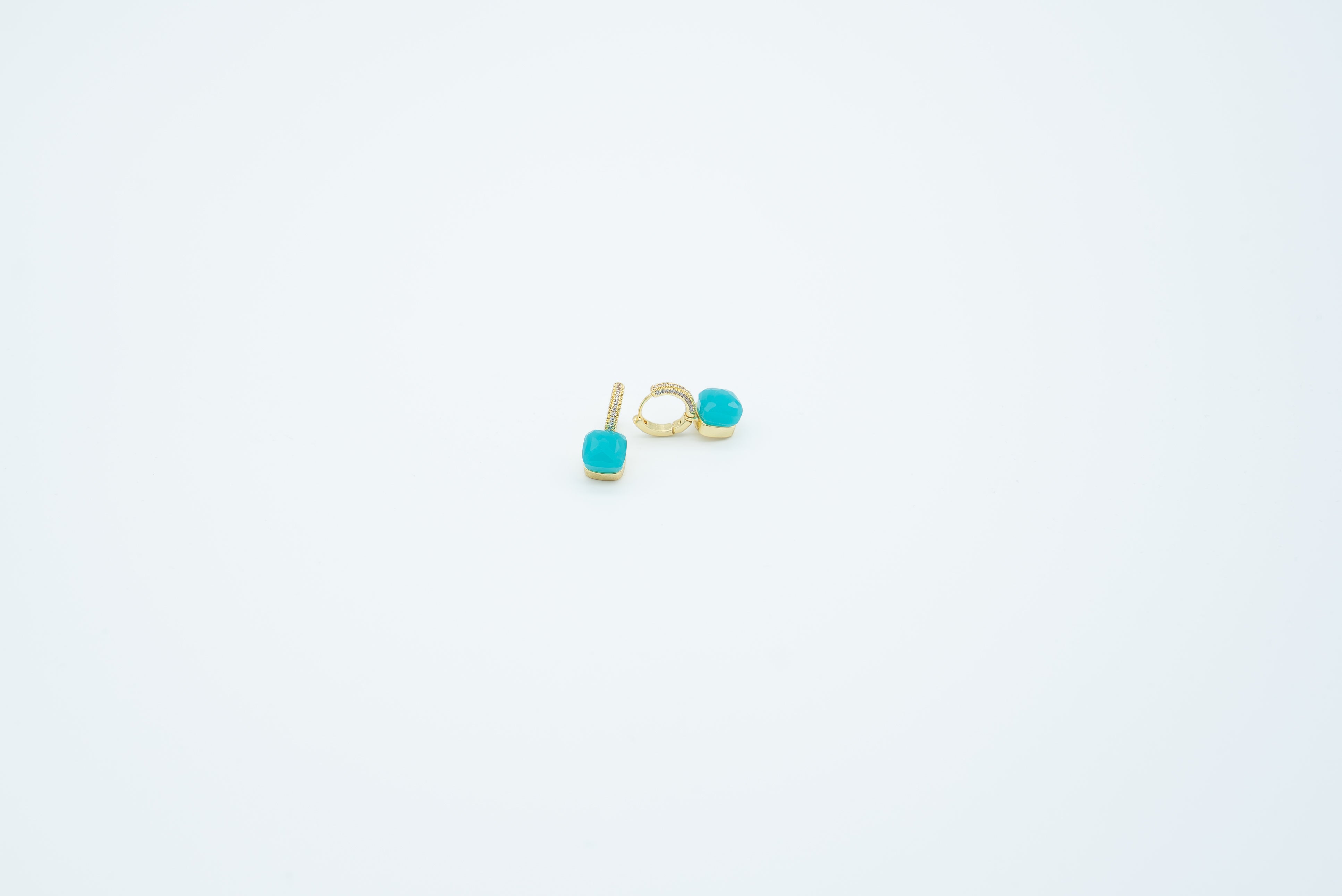 Pomera Turkuaz Küpe, canlı turkuaz taşı ve altın tonlu zarif çerçevesiyle ferah ve enerjik bir şıklık sunar. Minimal formu sayesinde kulakta hafif ve dengeli bir duruş sağlarken, taşın doğal rengi kombinlere taze bir dokunuş katar. Günlük kullanımdan özel anlara kadar her stile kolayca uyum sağlayan zamansız bir parçadır.