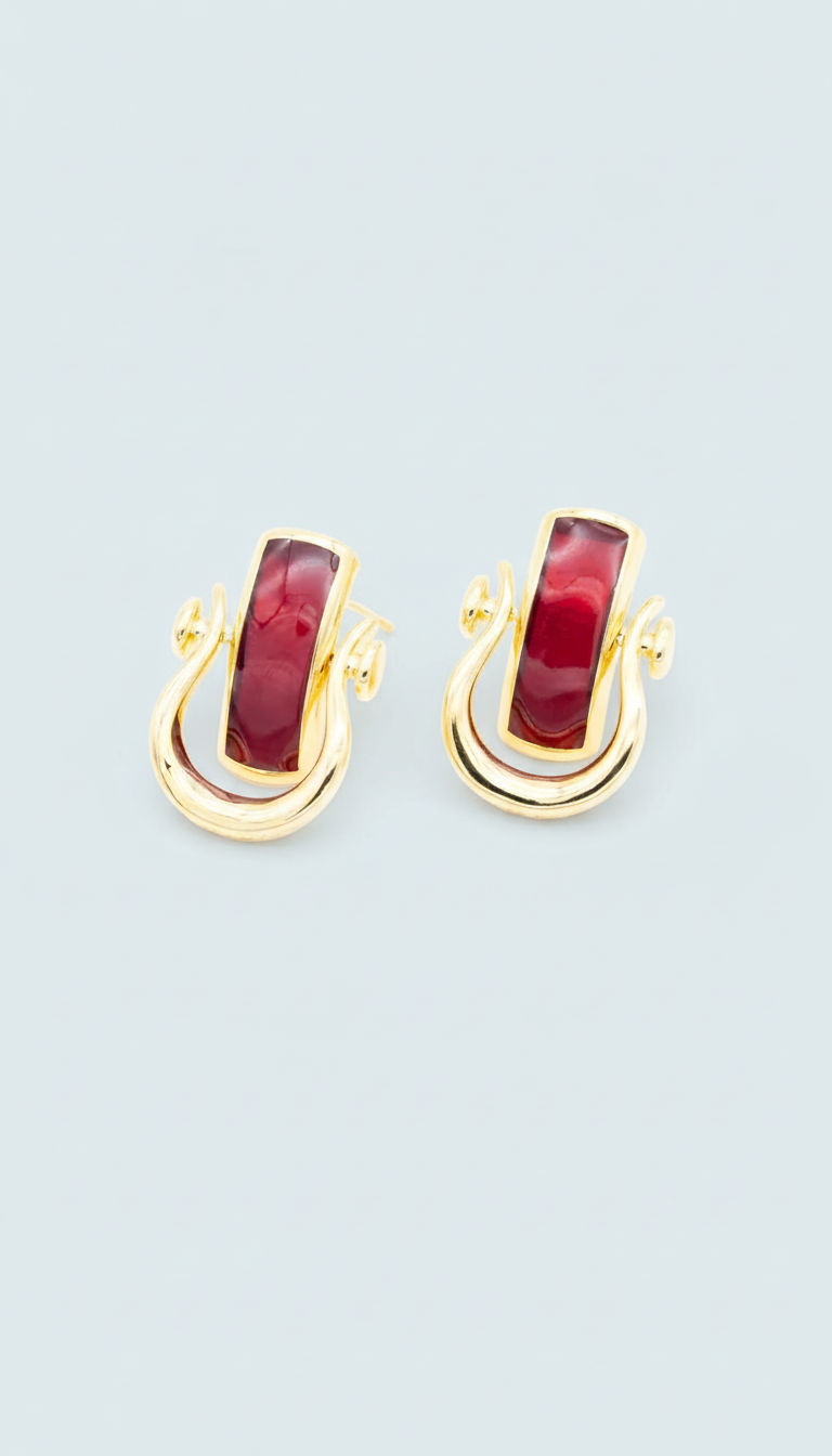 Bordeux Küpe, derin bordo rengindeki doğal taş detayı ve altın kaplama gövdesiyle zarif bir şıklık sunar. Klasik formu modern dokunuşlarla birleştiren bu tasarım, hem günlük kullanımlarda hem de özel davetlerde sofistike bir tamamlayıcıdır.
