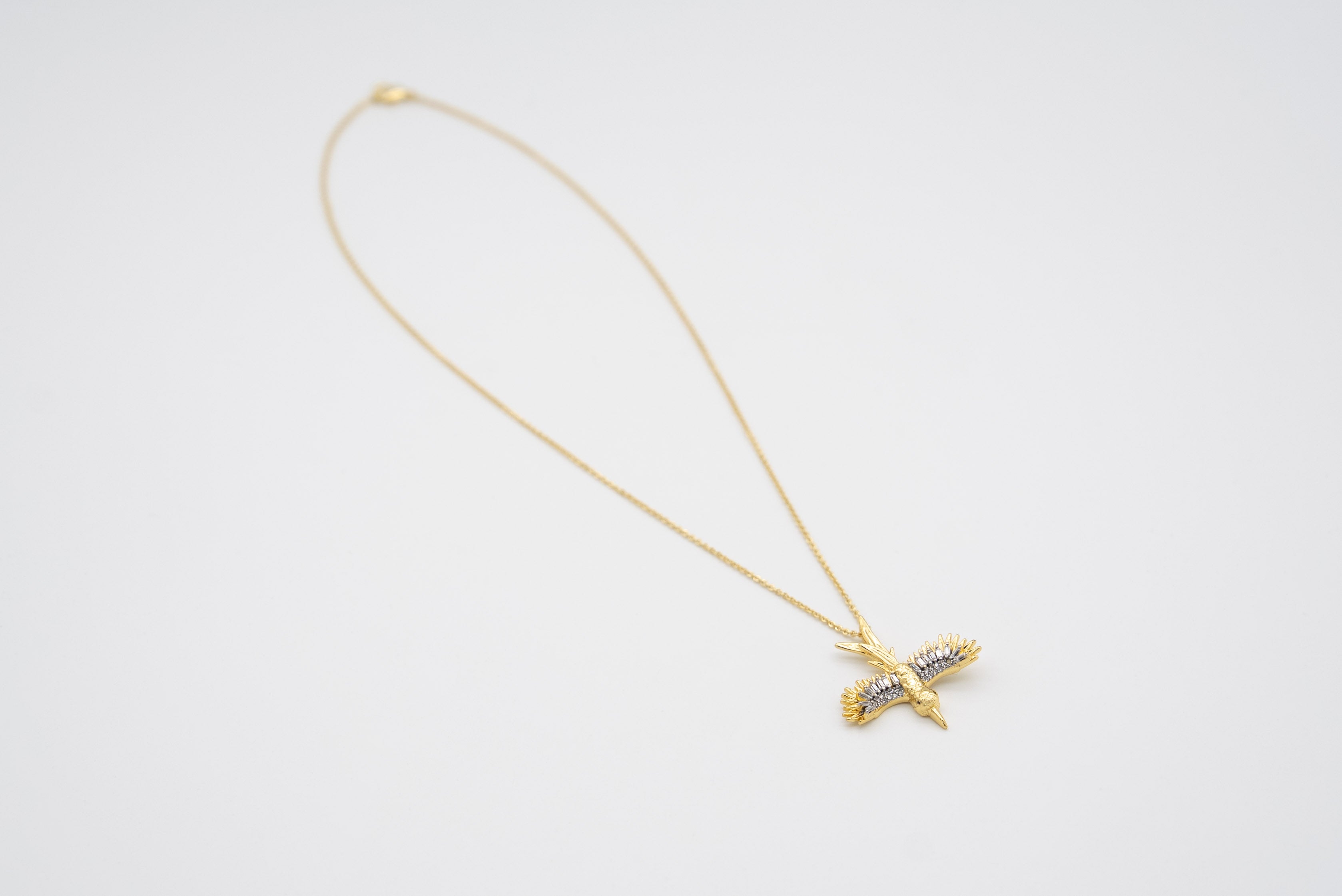 Ra Milka Kolye, zarif kuş figürü ve ışıltılı taş detaylarıyla özgürlük ve gücü simgeleyen özel bir tasarımdır. İnce zinciriyle boyunda hafif ve dengeli bir duruş sunarken, detaylı işçiliği sayesinde tek başına kullanıldığında bile güçlü bir stil etkisi yaratır. Günlük şıklığı tamamlamak ya da özel kombinlere anlam katmak için ideal bir parçadır.
