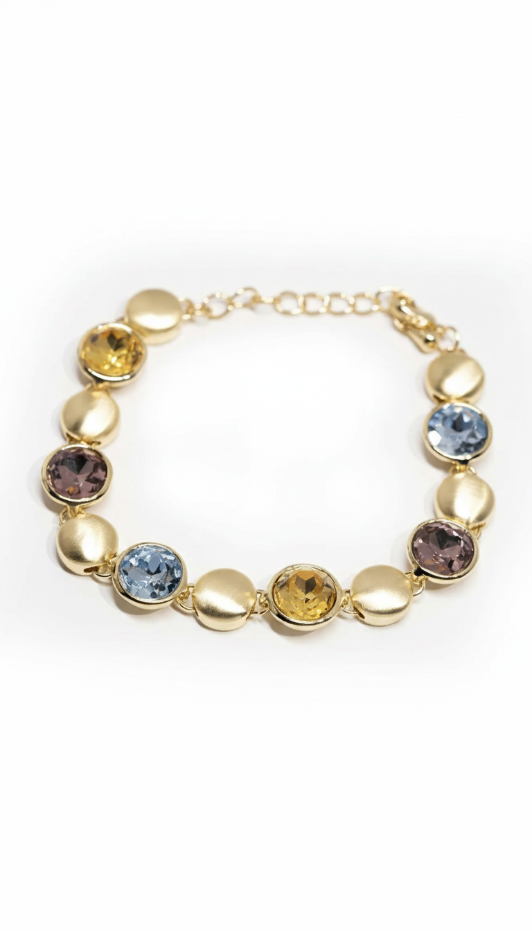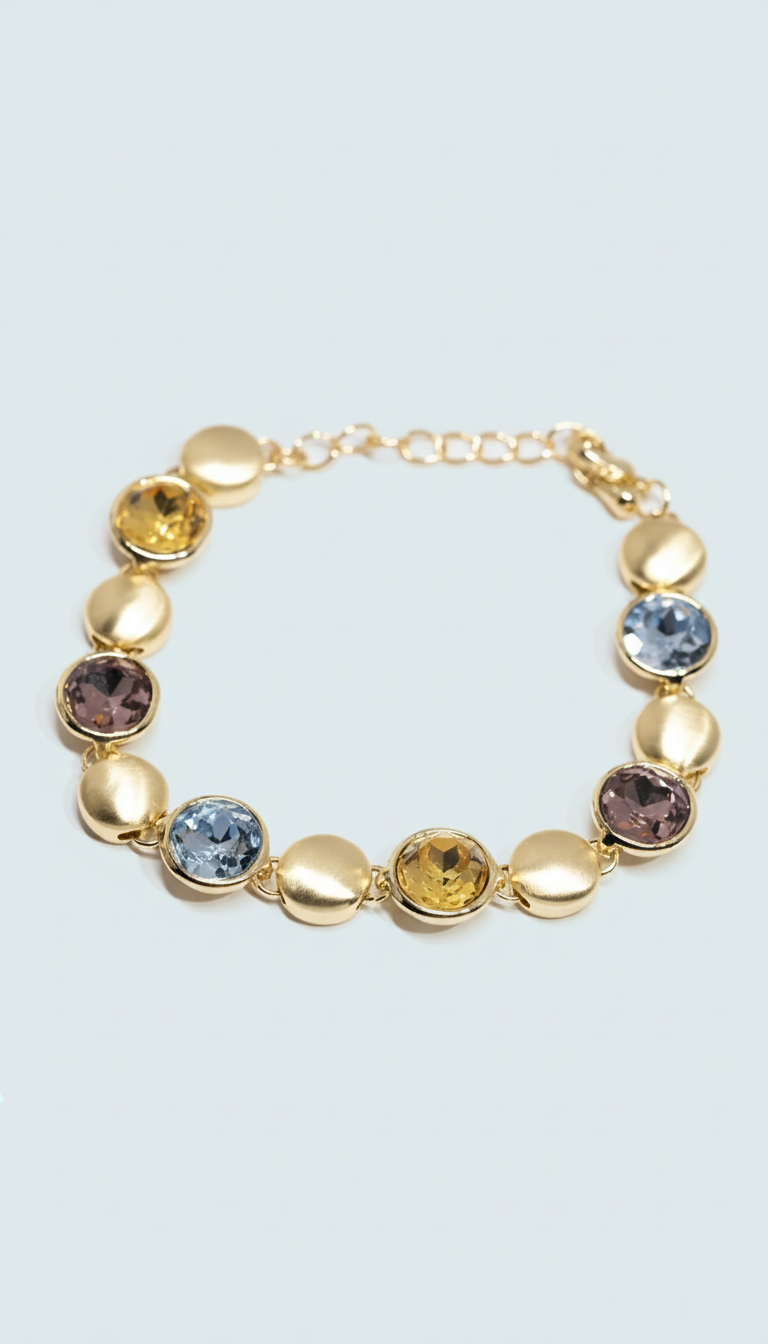 Stonely Renkli Bileklik, parlak taşların enerjisiyle şıklığınızı yansıtır. Altın tonlu detaylarla bütünleşen renkli cam taşlar, bileğinize hareketli ve dikkat çekici bir dokunuş katar. Hem minimal hem de çarpıcı bir stil arayanlar için eşsiz bir seçim.